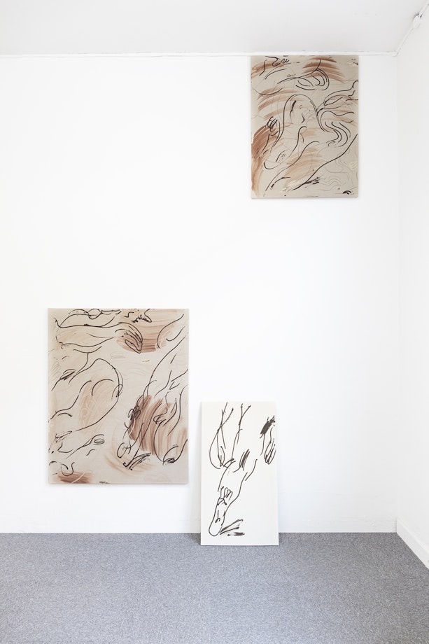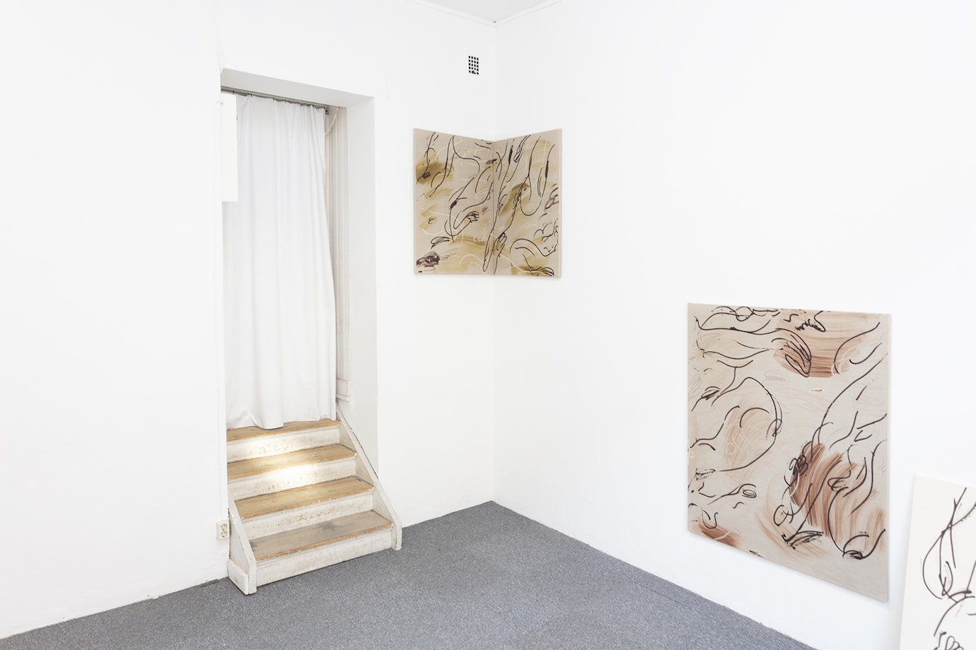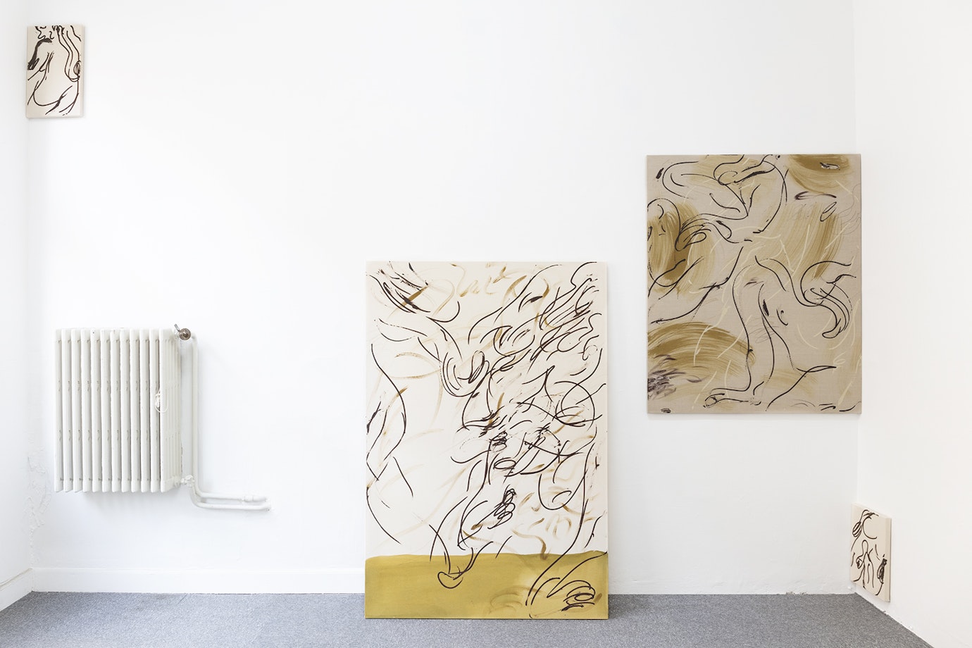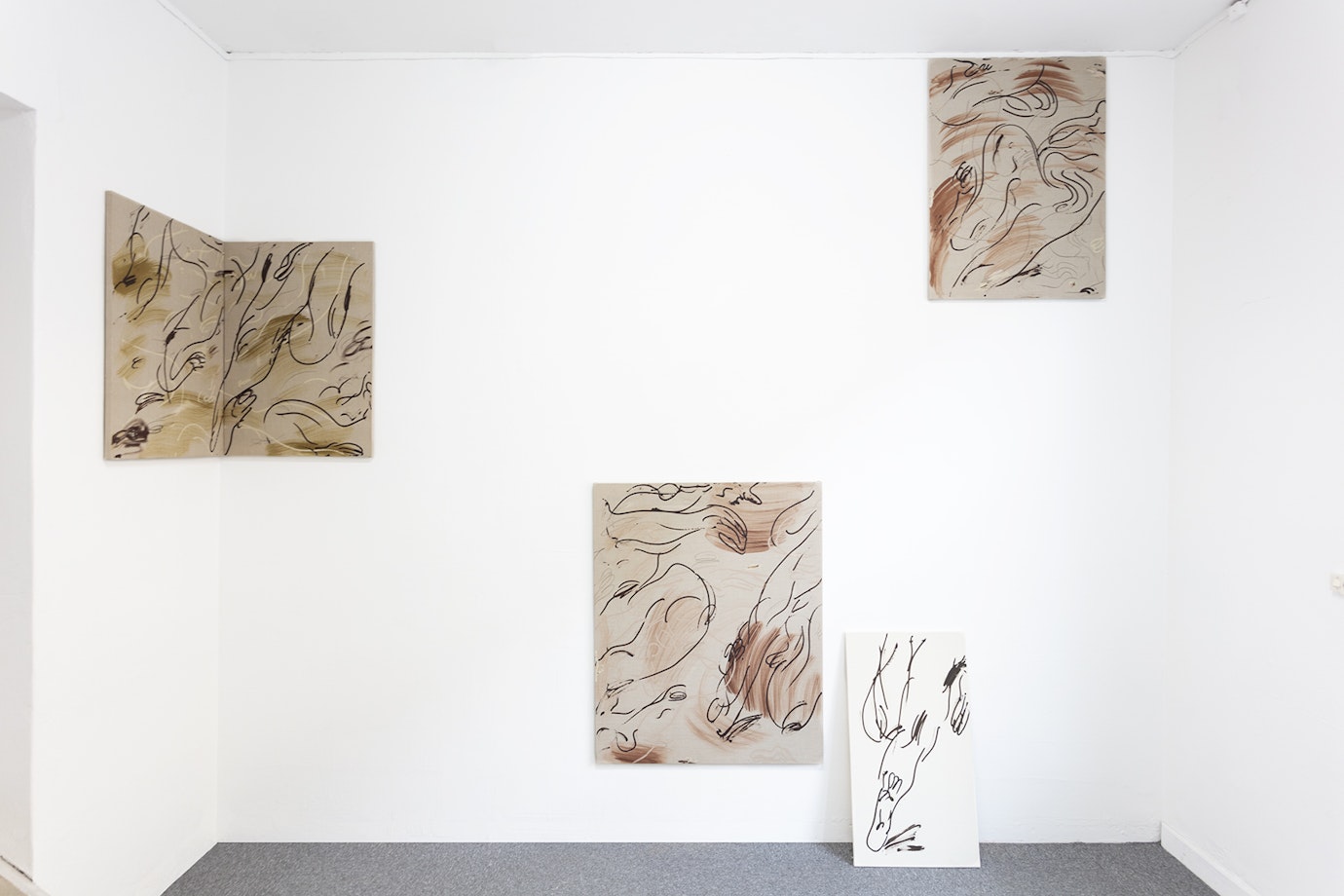 ”Det finns ingen väg ut. Flykten är omöjlig. Den enda vägen ut är in” intalar jag mig själv varje gång jag försöker fly något. När jag tittar på Alina Vergnanos teckningar som kretsar kring flykten – den möjliga, såväl som den omöjliga – så kommer jag att tänka på denna dubbla rörelse av ”inre” och ”yttre” flykt som konsten möjliggör i sina bästa stunder. Hennes teckningar av gigantiska, uppbrutna flyende kroppar är som visuella transkriptioner av surrealisternas automatiska skrifter, som försökte fly vardagen genom att låta det omedvetna styra deras handlingar.