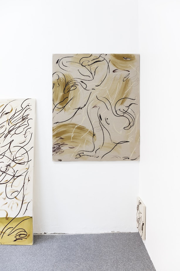 Alina Vergnanos konst har alltid opererat i gränslandet mellan det figurativa och det abstrakta. Hennes lustfyllda kroppar som springer, vilar, sover eller älskar och som böljer över ytan likt vågor, eller spasmer, befriade från all tänkbar narrativitet, kan ibland se ut som en uppbruten arkaisk skrift, ibland som en dröm som uppehåller sig vid tingens yta. ”Det finns inget djupare än ytan”, sade en gång Paul Valery. Så också här. Mina associationer går till Matisse pappfigurer, Kandinskys symfoniska formationer, till Disneys rörelsescheman, men också till Kobras smutsiga men ack så levande färgskalor. Hennes bilder får mig också att tänka på de våldsamma kroppsrörelserna i Pergamonaltaret i Berlin, ”Satans tron”, som Paulus så dramatiskt kallade den. Men i Vergnanos bilder är kroppslinjerna satta ur spel, likt ljusets rörelser på vattenytan, eller jazzvariationer, som både upprepar sig och bryter sig ur materiens tyngd.