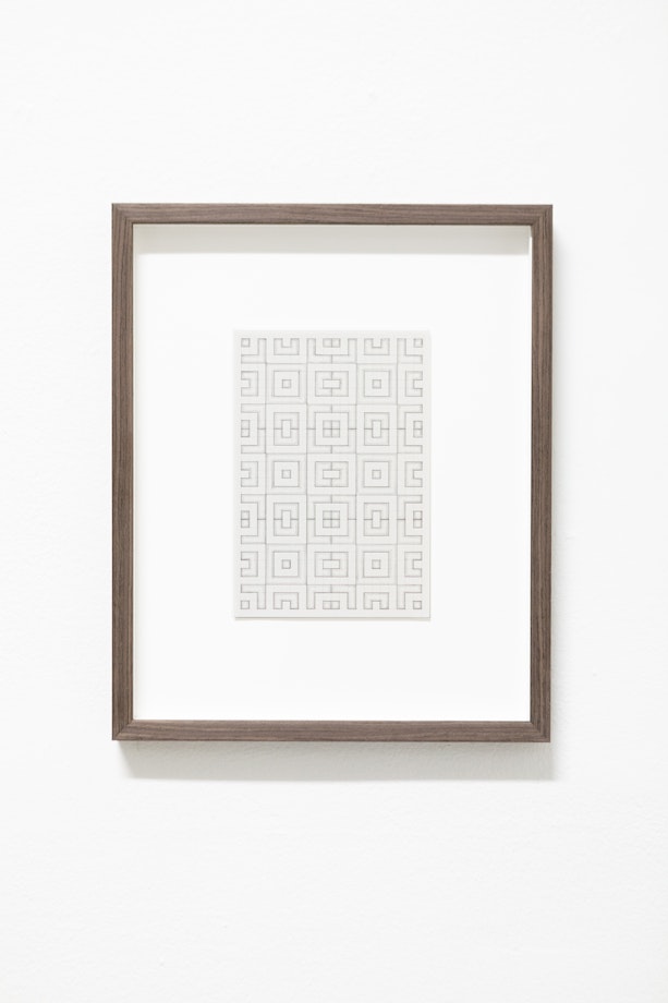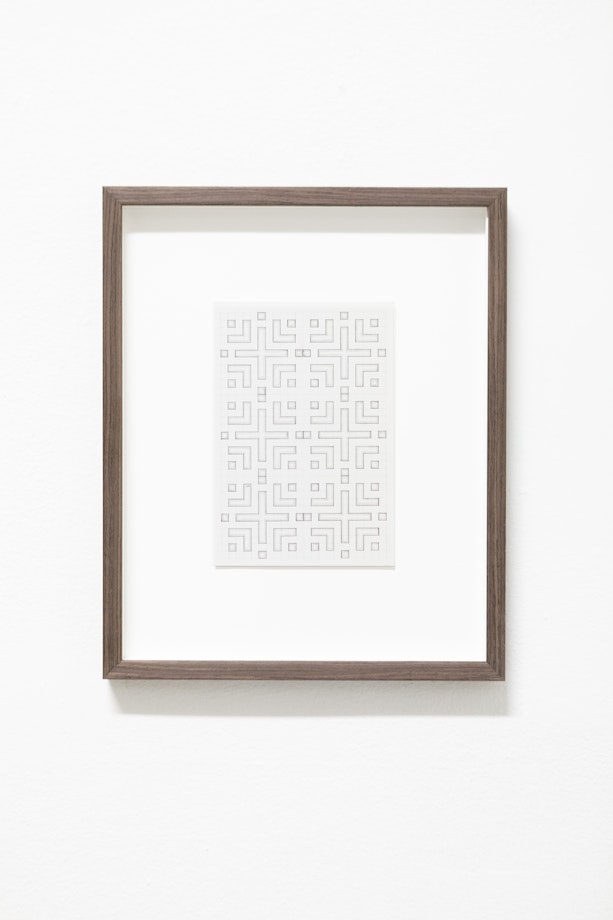 Trots den mekaniska processen är resultatet något helt annat. När ögat rör sig över dessa noggrant tecknade raster, uppstår oväntade förskjutningar i mönstren. Teckningarna är exakta, men rymmer även små ojämnheter som avslöjar den mänskliga hand som håller blyertspennan. Vi måste vässa våra pupiller för att se.