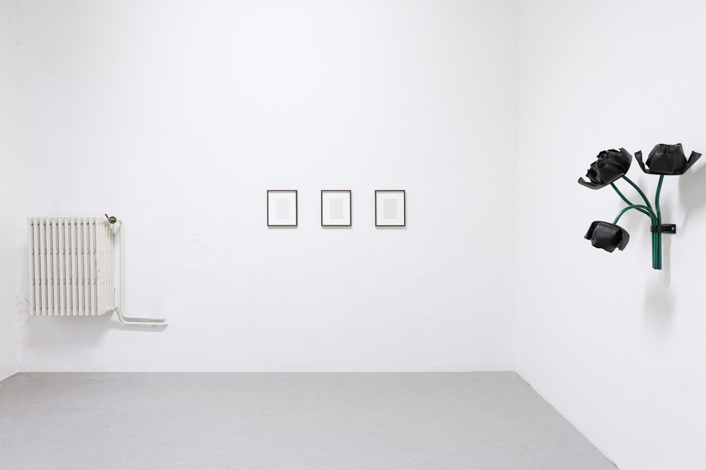 Seirs teckningar står i kontrast till Georg Nordmarks Untitled (Black Rubber Supply Hose) vars väldiga format överskrider våra mänskliga proportioner. Hans verk bekymrar sig inte för att uppfattas som auktoritärt eller dominant. Samtidigt tror jag inte att det ignorerar människan.