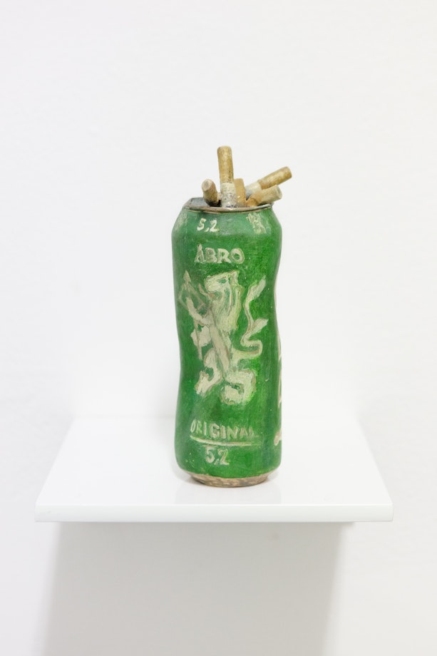 bild, man har gjort en ansträngning med kläderna. Det är fint, när man tänker på det, rörande. Någonting i den situationen har krävt att kanaliseras i en gestaltning, och det är vad vi ser att öldrickarna också känner. De är framme, de gör någonting som inte alls ska leda till någonting annat. Det ska inte göra dem bättre på jobbet, det ska inte in på något CV, ingen ska bedöma dem, för det som de gör är ingen prestation: de lever. I tillfällig frihet. Isolerad från hur de hamnade där och var de är imorgon. En märklig likhet finns mellan dem och Ekesiöös Åbro. På den ser det ut som om någon utan att egentligen tänka på det har gjort en skulptur med fimparna. Det konstvärdig uppstår på något sätt, och upptäcks av konstnärerna.