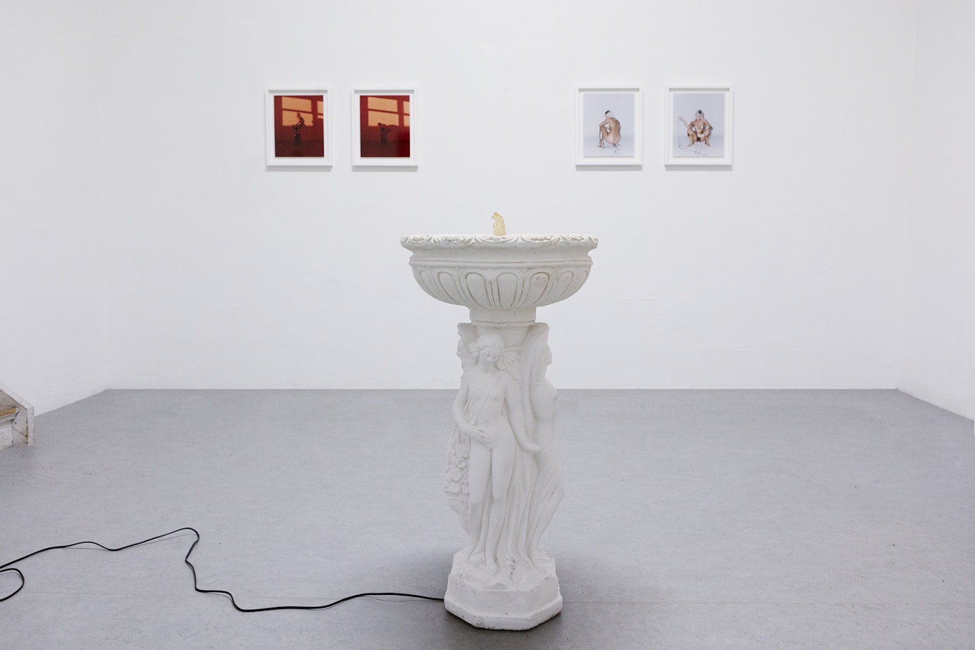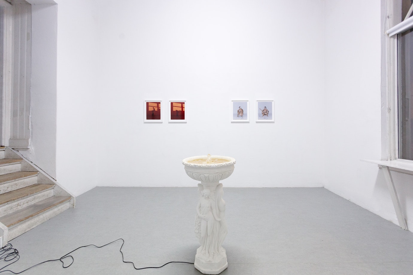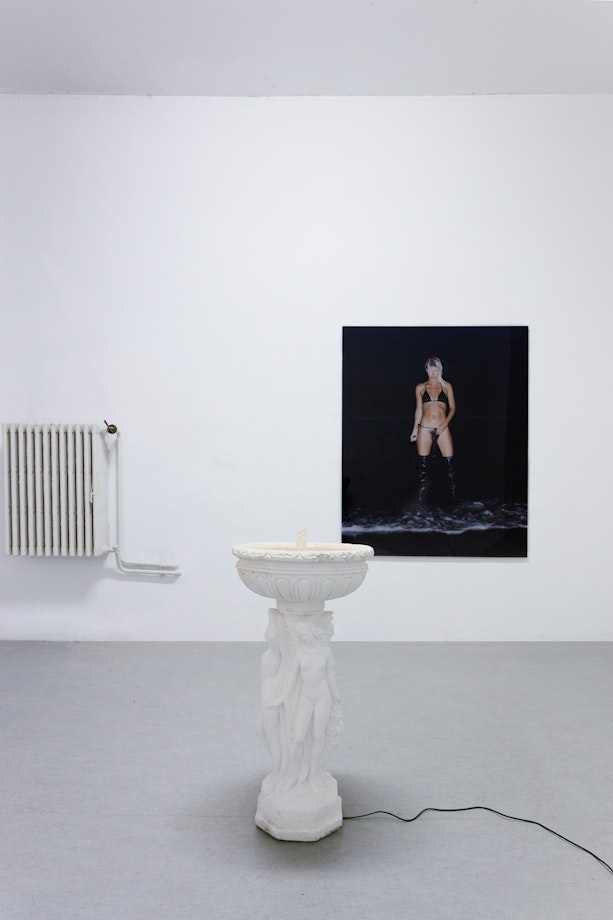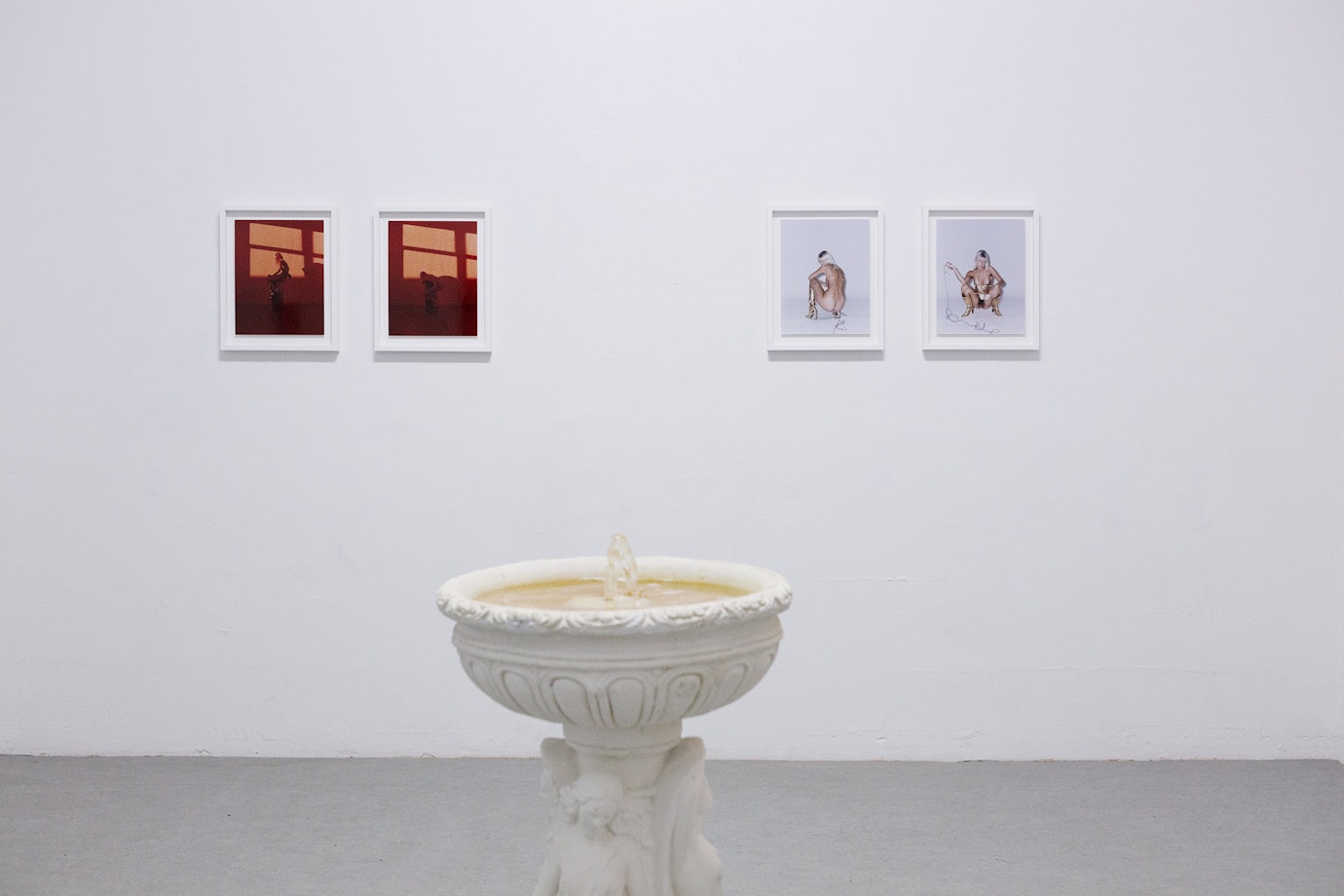 Står jag i en reklamkampanj för Kim Kardashians nya underklädesmärke eller i mörkrummet på Berghain? Voyeurismen är oklanderlig. Men vem har iscensatt den? En naken kropp står framför oss, en avgrund, men den tittar, som avgrunder brukar göra, tillbaka. Vem är hon? Är det här en kritik mot objektifieringen av den kvinnliga formen? Är det ett revir-kissande i Galleri Cora Hillebrand? Ett uppror mot den karriäristiska självframställningen i senkapitalismen? Är det här verkligen heligt? Betalade jag pengar för att bli kissad i ansiktet? Jag vet inte. Var är närmsta toalett?