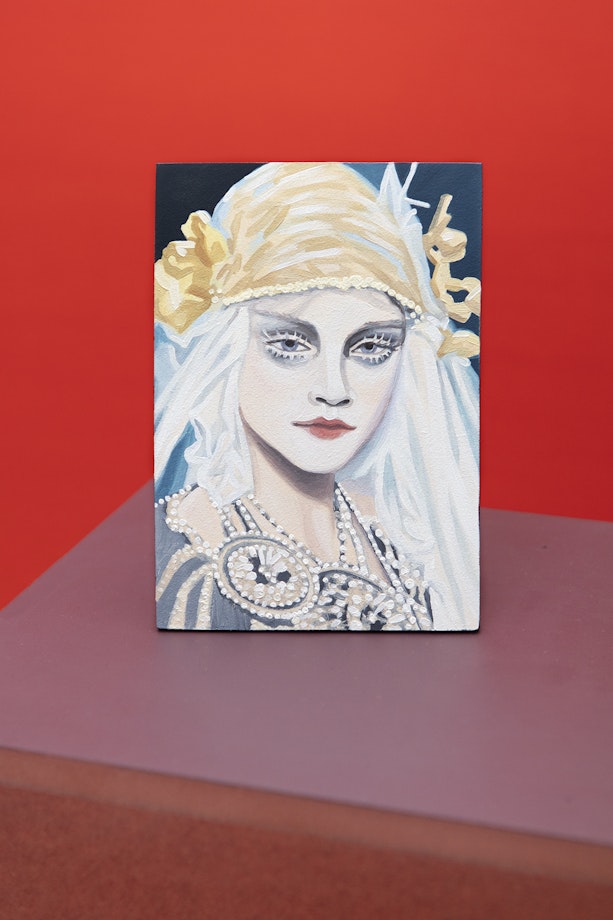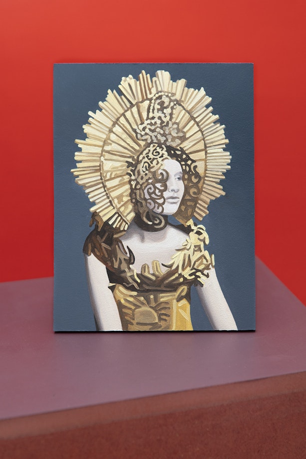 Känslan av att målningarna är kulisser och objekten rekvisita växer. Samtidigt förefaller målningarna huvudsakligen vara kulisser i förhållande till rekvisitan, och vice-versa. Helheten bildar något tredje. Galleriet som scen. Jag tänker på David Joselits text Painting Beside Itself som cirkulerade flitigt för ett par år sedan och som diskuterar måleriets roll som både rekvisita och aktör. Där talar han om det expanderade måleriets sätt att bygga upp ett nätverk av narrativ och hur dessa omöjliggör ”drömmens ögonblick” om så bara att för att undvika, som han skriver, att ”gå i den modernistiska fällan av negation som låter verk på duk om och om igen reduceras till noll och intet samtidigt som de förblir unika föremål för kontemplation och marknadsspekulation”.