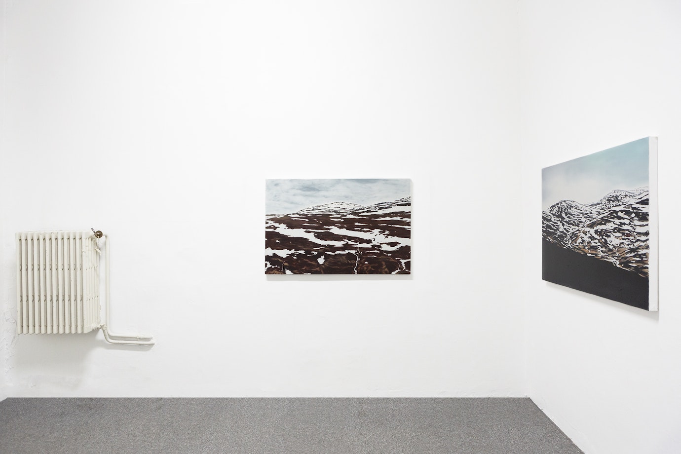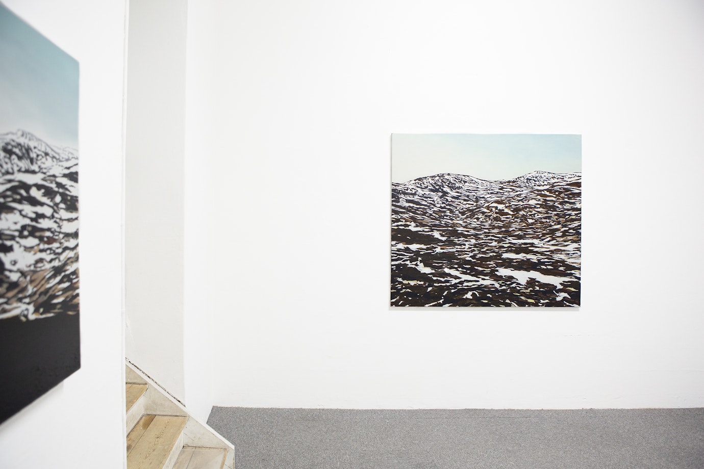 Man kan vilja fly upp i bergen för mindre, eller varför inte in i ett korrugerat plåtskjul i den skånska obygden. Och om man då skulle få för sig att måla några bergslandskap, så skulle man text kunna ge de titlar som ”brev till en annan tid”.